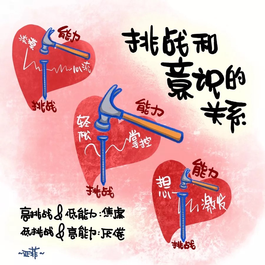 - 很焦虑的时候,就说明挑战太大了,能力不够,这个时候的方式就是降低难度,增加能力;