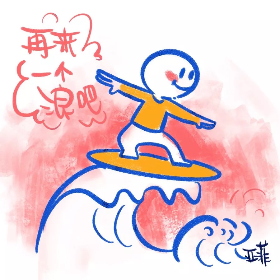 画面想像:在汪洋大海之中,一个个大浪翻卷而来,面对大浪,我不会感受到遭遇(suffer)了生命的打击,而是拿出一块冲浪板,踩上大浪顶端(surf)去享受精彩的人生。每个新挑战,都是我热切期盼的啊!再来一个浪吧~